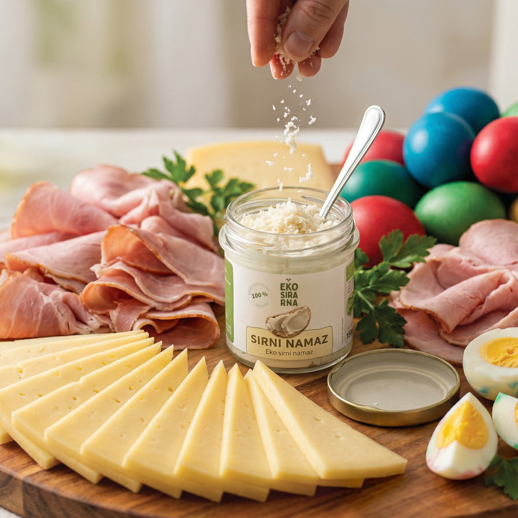 Malo drugače kot običajno, a vendar s klasičnim pridihom, vam predstavljamo našo velikonočno desko. Osrednji del predstavlja izredno kremast hrenov namaz, dopolnjujejo pa ga ekološki sir Dimček in druge ključne sestavine za velikonočne okuse.